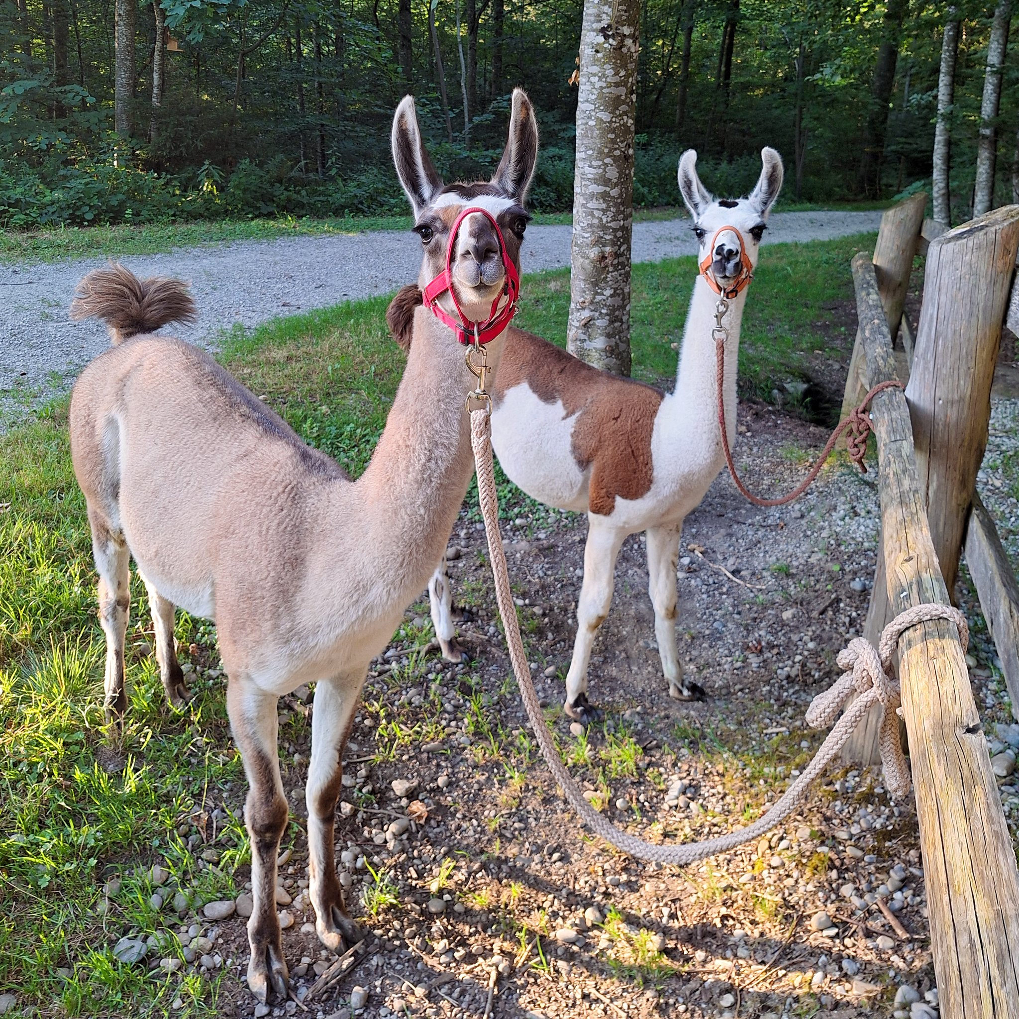 Du möchtest mehr über Lamas erfahren? Auf dem Hof lernst du unsere Lama-Herren kennen. Gemeinsam gehen wir auf eine Trekkingtour. Unterwegs darfst du, mit einem weiteren Kind, ein Lama führen. Beim Grillplatz machen wir unsere Mittagspause.
